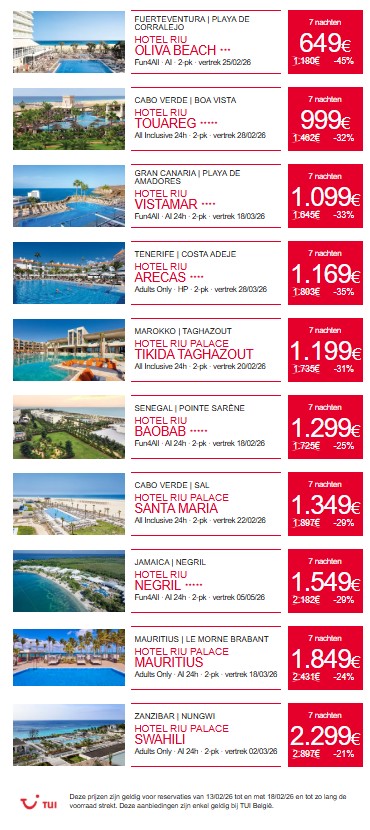 Kies je volgende vakantie uit ons ruime gamma, van een plekje dichtbij huis tot een rondreis rond de wereld. Spannende avonturen beleven, culturele parels opzoeken of uitrusten onder een tropische zon: wij bezorgen je de mooiste reisherinneringen.